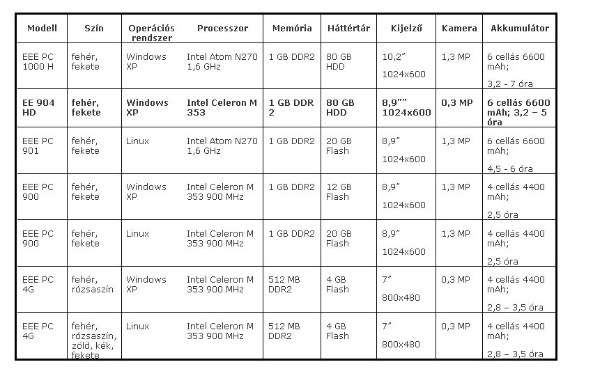 Apropó, a sorozatszámok! Legutolsó EEE PC összefoglaló táblázatunk óta újabb modellek is vannak már a raktárunkban. Ezért megragadjuk az alkalmat, hogy frissítsük a táblázatunkat, hogy könnyebb legyen a már megvásárolt autós töltőhöz egy megfelelő netbookot is találni.