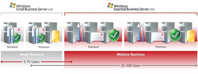 A nemzetközi porondra 2008. november 12.-én lép a Microsoft új szerver családja, a 75 gépnél kevesebb platformmal rendelkező kisvállatoknak készült Microsoft Small Business Server 2008 és a legfeljebb 300 számítógéppel rendelkező középvállalatok számára gyártott Essential Business Server 2008. A Windows Essential Server Solutions számtalan módot ad a kis-és középvállalati piac kiaknázására.