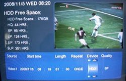 A felvételeket időpontjait előre beprogramozhatom, sőt automatikusan rendszeres felvételeket is készíthetek például a kedvenc sorozatomról. HQ, SLP, EP, LP és SP minőség között választhatok és rögtön azt is látom, hogy a rendelkezésemre álló kapacitásból mennyit fog elfoglalni a felvétel. Nem járhatok úgy, hogy kifogy a “szalag”.