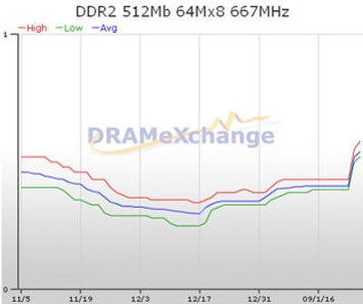 Minden gyártó, a visszazuhant kereslet miatt - vagy nevezzük túltermelésnek -, és a veszteségek csökkentése érdekében, visszafogja a DRAM eladásokat. Emiatt azonban az árak meredek emelkedésbe kezdtek az elmúlt két-három hétben, egyes termékeknél már a tavaly év végi ár másfélszeresét is elkérik. A kívánatos ár a tavalyi ár kétszerese lenne.