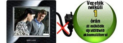 Az újratölthető akkumulátor egy órán át működik hálózati áram nélkül.