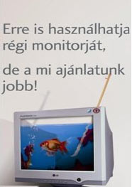 A következő két hónapban, március 23 és május 31 között, átvesszük Tőled a régi, bármilyen típusú monitorodat, még akkor is, ha az már kipurcant Csak annyit kérünk, hogy vegyél helyette egy nagyszerű LG LCD-t. Attól függően, hogy melyik típust választod, a Te ócska monitorodért annál többet kaphatsz.