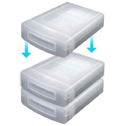 Ha több merevlemezünk is lenne, amelyeket még szállítani is szeretnénk, akkor ajánlom mindenki figyelmébe a Raidsonic HDD tárolódobozát. A vízálló műanyag dobozban nem csak szállítható, hanem egymásra pakolva rendezetten tárolhatók is a merevlemezek.