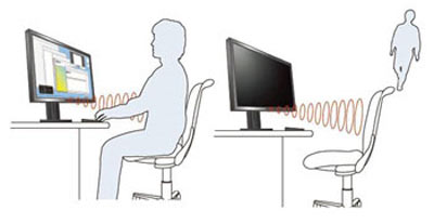 A monitorba beépítésre került egy infravörös érzékelő, amely azt figyeli, hogy ül-e valaki a monitor előtt. Amíg dolgozunk, a monitor is üzemel. Amint felállunk a székből, a monitor vár még 40 másodpercet és kikapcsolja a kijelzőt. Ha visszatérünk, akkor nem kell semmilyen gombot sem megnyomnunk, a monitor automatikusan visszakapcsolja a képet.