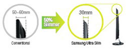 Az új monitorok ultravékony készülékházba kerültek, a teljes vastagságuk csupán 30 mm, egyes eddigi monitoroknál akár 50 százalékkal is vékonyabbak. Ezáltal nemcsak kisebb helyigényűek lettek, hanem karcsúságukkal sokkal elegánsabbak is. A modern, de egyben természetes körvonalak finoman kiemelik az otthon eleganciáját.