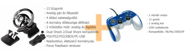 Az 50 ezer pontot elérők számára már az MM 625-ös, FFB-s komplett játékirányító szettet kínálunk egy MM 817-es game pad-del egy csomagban.