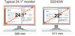 Egy csapásra több helyünk lett az íróasztalon, mert a 22-es monitor körülbelül 10 százalékkal kisebb helyen elfér, mint a 24 colos társa. Ráadásul a 22-es S2243W olcsóbb is, mint egy 24 colos másik EIZO.