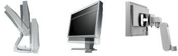 Az ergonomikus munkahely kialakításához a monitor széles tartományban állítgató erre-arra. Állíthatjuk le és fel, dönthetjük előre és hátra. Ha egy állványra szeretnénk felszerelni, hogy még szabadabban mozgathassuk, akkor egy kattintás is elegendő ehhez (meg persze egy megfelelő tartóállvány is).