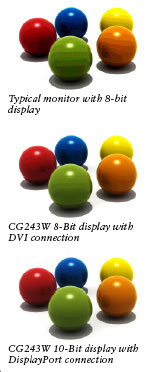 Egy háromdimenziós táblázatban vezérli a CG243W minden képpont és minden tónusérték fényerejét és színmegjelenítését. Az eredmény: tökéletes fénysűrűség-homogenitás és színtisztaság.