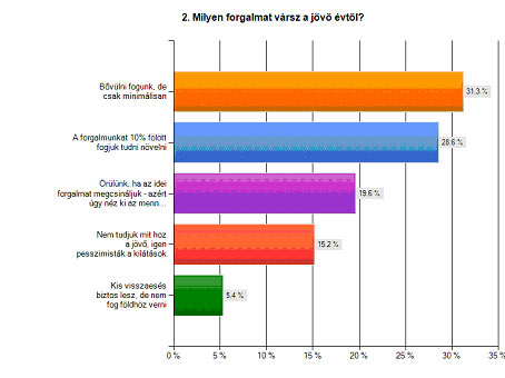A válaszadók meglehetősen OPTIMISTÁN néznek a jövő elébe, 80 %-otok szerint legalább az idei forgalmat fogjátok hozni.