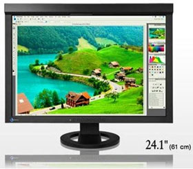 A piacon az első profi grafikai monotor lesz az EIZO CG245W, amelyhez nem szükséges külső kalibráló készüléket használni. A beépített kalibráló a felső keret alatt bújik meg addig, amíg nincs szükség rá. Amikor a kalibrációs folyamat elkezdődik, lehintázik a keret alól és automatikusan elvégzi a feladatát.
