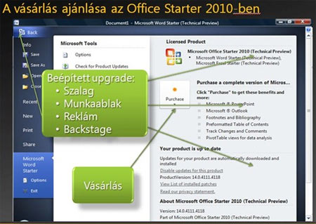 Először is fontos tudni, hogy a Microsoft Office 2010 Starter nem egy ingyenes Office változat, amit szabadon terjeszthetünk vagy másolhatunk. A Office 2010 Starter egy fizetős eszköz, amivel az új PC-t vásárló végfelhasználót meggyőzhetjük az új programcsomag előnyeiről és elősegíthessük, hogy később meg is vásárolja azt.