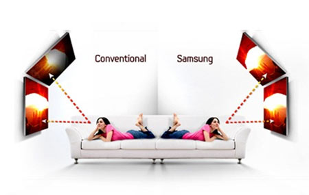 Tehát döntsük el, hogyan szeretnénk mozizni, miután befejeztük a munkát a számítógépen. Végigheveredhetünk a kanapén vagy beülhetünk a kedvenc fotelunkba és a számítógép halk duruzsolása mellőzésével adhatjuk át magunkat az élvezeteknek. A Samsung Magic Angle szélesre tárja a látószöget, 5 lépésből álló látószög-kezelés olyan érzetet kelt, mintha pontosan szemben ülnénk a képernyővel.