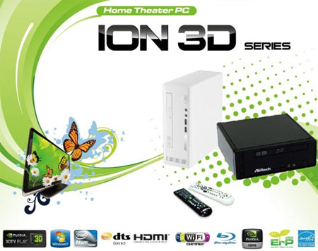 Nagysebességű 802.11n hálózati csatolójának két antennája van az előlap mögé rejtve. A vízszintesen és a függőlegesen elhelyezett antennák, a gyorsaság mellett, jól tudják a beérkezett jelet hasznosítani, így stabil kapcsolatot tudunk tartani a vezeték nélküli eszközeinkkel. A kis mérete (2,5 liter) miatt könnyen találunk majd helyet számára a TV állványon vagy például az LCD mellett / mögött a falon. Az ION 3D ultra csendes, legfeljebb 24.1 dB zajt bocsát ki magából. Az alacsony fogyasztás is szempont egy ilyen készülék megvásárlása során, az Asrock gépe egy energiatakarékos izzónál nem éhesebb, max. 27 W-ot igényel a működéséhez.
