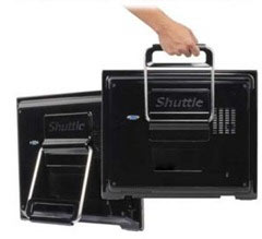 A váz egy kihajtható láb segítségével áll meg az asztalon, a monitor felső szélébe épített webkamerával és a beépített hangszórókkal válik igazán interaktívvá. A barebone PC tartalmaz még vezeték nélküli kapcsolathioz WLAN kártyát (802.11 b/g és draft-n) és memória kártyák fogadásához való olvasót is. Az Atom D525 kiváló teljesítményt nyújt az általános feladatok megoldásához, az internethez és az irodai programokhoz. A hátsó lábat felhajtva az egész gép mobillá válik, és mint egy aktatáska, könnyen szállítható. Ez nagyon praktikus, például, ha előadást tart valaki és át kell vinnie egyik helységből a másikba. De mielőtt elvinnénk magunkkal bárhová is, itt az idő, hogy a gépépítő keze belenyúljon abba, hogy milyen gép is lesz a végeredmény.
