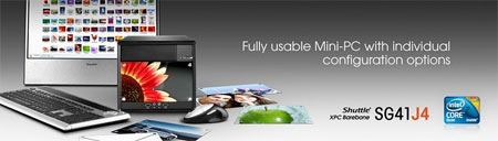 A saját elképzeléseink szerint öltöztethetjük fel a Shuttle SG4J4 (13,3 liter) mini-PC-t. A ház előlapján levő átlátszó plastic lap levehető és mögé például céges embléma, egy fotó a családról vagy egyéb más motívum tehető. A kis számítógép így barátságossá és teljesen különccé varázsolható, néha-néha megújítható. A kialakítható konfiguráció ún. általános célú számítógép lehet, Intel Core 2 processzorok (FSB 1333, s775), egészen 8 GB DDR3 (800/1066 MHz) memória és két NCQ SATA-II vagy egy IDE háttértár telepíthető bele. Az alaplapi GMA X4500 grafikus kártya 1759 MB memóriával tud maximálisan gazdálkodni, a 250 W-os tápegység keretein belül azonban különálló, kéthelyes grafikus kártyát is választhatunk. Napi feladatokhoz, egy egyedi irodai gépnek vagy belépő szintű otthoni PC-nek megfelelő alap.