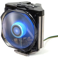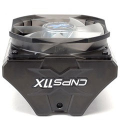 Az extrém CNPS11X egy igazi gyöngyszem, olyan mint egy sportautó. A krómozott réz csövek és a hűtőlamellák egy bivalyerős roadster hangulatát árasztják. A tetején a hatalmas X markánsan tudatja mindenkivel, valami eXtra, valami eXtrém megoldás került a processzor tetejére. A Zalman legújabb fejlesztése 12 cm-es kéken világító ventillátorral préseli át a levegőt a két, egymástól teljesen függetlenített bordázaton. A bordák a processzor felületéről 5 hűtőcsővel szívják el a meleget, az így létrejövő levegőáramlat a VGA és az északi híd hűtésébe is besegít.