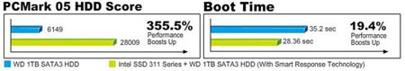 A Z68-ból eredő másik új technológia az Intel Smart Response, ami az SSD és a HDD párosításával pörgeti fel a merevlemez és a processzor kapcsolatát, ez a boot időtől kezdve az alkalmazások elindulásán keresztül a fájlok beolvasásáig és írásáig minden területen sokkal rövidebb várakozási időt jelent a számunkra.