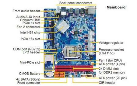 Az SH61R4 beépített tápegysége 250 W, ami egy modern asztali gépnek a fele, a fogyasztás a 1155-ös Core i2/i5/i7 processzorokkal és például egy SSD-vel igen csak kordában tartható.