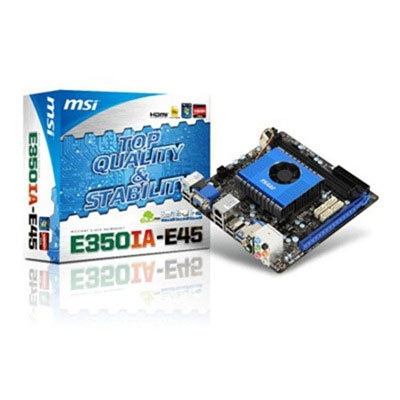 Az MSI E350IA-E45 kódjelű mini-ITX alaplapon az AMD FT1 tokozású, kétmagos Zacate 350 processzora zakatol, a kiszolgálását az AMD Hudson M1 chip készlet végzi. Két, gyors DDR3 memóriát rakhatunk melléjük, maximum 8 GB-ot, ami egy ilyen kis lap felhasználási céljainak pont elegendő. A DDR3 sebessége a legelterjedtebb 800, 1066 és 1333 MHz, még az is lehet, hogy egy asztali gép bővítéséből megmaradó darabokat használunk fel, ami a költségeinket tovább tudja faragni.