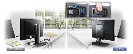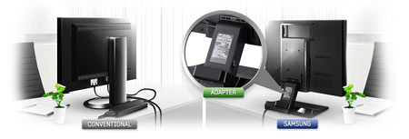 A monitor többféle módon történő elhelyezésében, a fali VESA tartóra való felakaszthatóságon túl, egy újdonság, a csatlakoztatható adapter és a fogantyú segít. Ha rendszeresen át kell helyezni a monitort, akkor a mozgatást ez a fogantyú, az installálást pedig az adapter könnyíti meg.