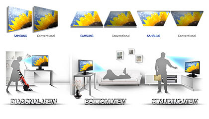 Nyilván nem megoldható, hogy a monitor egyetlen beállítással minden irányból azonos képminőséget produkáljon. A Samsung Magic Angle 5 különböző nézőszög beállítással az éppen aktuális felhasználási módhoz igazodva kitűnő képélményt és lenyűgöző képélességet nyújt.