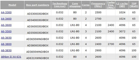 Az A8 sorozat a legjobb teljesítményre képes és a legmagasabb típusszámú 3D grafikus processzorokat tartalmazza. Az A6-osok kisebb CPU és GPU teljesítmény “visszametszéssel” kedvezőbb áron kínálják a három- és négymagos feldolgozást. Az A4-esek, valamint a később megjelenő E2 vonal az úgynevezett általános célú, például irodai alkalmazású vagy tanuláshoz, munkához használt gépekbe valók, a fő erényük az alacsony ár, amiért két processzormagot és integrált grafikus gyorsítót kapunk, ez utóbbi valóban jelentős megtakarítást jelent.