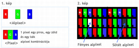 Az LCD monitor panel a színek megjelenítéséhez több millió piros zöld és kék alpixelt tartalmaz, ahogy az 1. képen látható. Néhány alpixel igen kis méretű fényes vagy sötét pontként jelenhet meg a képernyőn, ahogy azt a 2. kép mutatja.