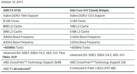 Beszéljünk kicsit a konkurenciáról, mivel teljesen új CPU családról van szó. A nyolcmagosok versenytársai a szintén szorzózár mentes Intel Core i5-2500K és Core i7-2600K körül keresendőek. A hatmagos FX-6100 kihívja az Intel Core i5-2310-esét, az AMD elképzelései szerint. A napokban megjelenő tesztek és tapasztalatok majd eldöntik, hogy az Intel vagy az AMD jön-e be jobban a felhasználóknak. Az AMD kicsit alacsonyabb ára biztos sokat nyom a latba, most úgy tűnik, hogy az alkalmazások futási sebessége, a magok számítási teljesítménye dönthet az Intel javára.