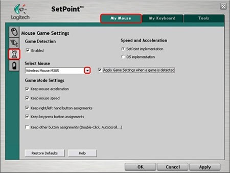 A Logitech SetPoint szoftver, ami az egerünket vezérelni fogja, tud néhány praktikus dolgot. Beállíthatjuk az egyes gombok feladatát, mit csináljanak kattintáskor. Alapból persze a jobb és bal klikk a dolguk, de átprogramozhatjuk őket például a nagyításra vagy a scrollra, ha ezt használjuk gyakrabban. Azt is szabályozhatjuk, hogy a játékok alatt az egér az operációs rendszer vagy a játék beállításait használja.