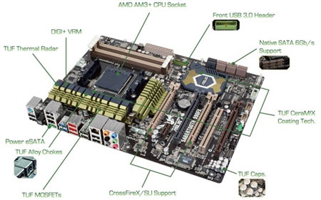 Az összes beépített alkatrész kemény követelményeknek kell hogy megfeleljen, így az alkatrész beszállítóktól csak a legjobb minősítésű kondenzátorok, MSOFET-ek és egyéb kellékek jöhetnek fel a SABERTOOTH fedélzetére. Az ipari standard-dal szemben az elvárás sokkal magasabb, 25 százalékkal kell felülteljesíteni. Az AMD alaplapja ezért egyszerűen jobban bírja, mint a többi.
