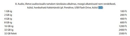 A külső SSD-k a rokonaikhoz, a pendrive-ok és USB Flash drive-ok mellé kerültek a díjfizetési listán. Sajnos a legmagasabb összeg vonatkozik rájuk, így a legkedveltebb 64 GB és 96 GB tárkapacitású modellek árai akár 10 százalékot meghaladó mértékben is növekedhetnek.