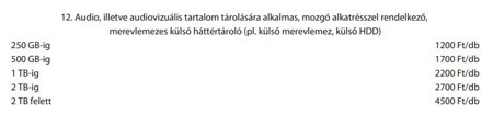 A külső HDD ebből a tekintetből halszálnyival jobban járt, kicsivel alacsonyabb díjtétel terheli a modelleket, náluk inkább az a gond, hogy eleve magasak az árak még a tavalyi thaiföldi árvíz következtében.