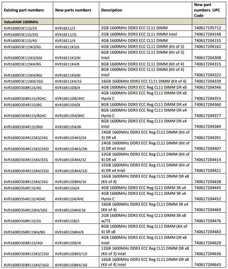 Ezekkel az új termékszámokkal először a májusban frissen gyártott, valamint az ezt követően bevezetésre kerülő, új DDR3 típusú HyperX-ek és ValueRAM-ok címkéin találkozhatunk először majd. A jelenlegi több mint 20 karakteres termékkódok így folyamatosan lecserélődnek, később természetesen az összes memória modul esetében.