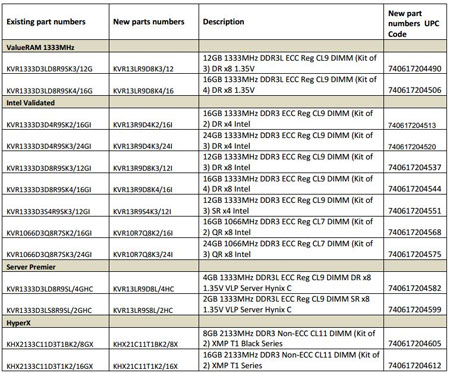 A Kingston Technology 2012. május 1.-ét követően átáll egy új, egyszerűbb termék számozási rendszerre a HyperX és a ValueRAM-oknál.