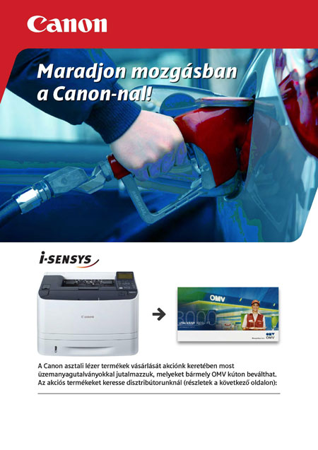 A Canon központi promóciójában az asztali lézer gépek mellé december végéig OMV utalványok járnak. Mivel az akciót ezúttal nem automatikusan kezeljük le, a vásárlásodhoz járó utalványt KÉRNED KELL ügyfélszolgálatos munkatársunktól.