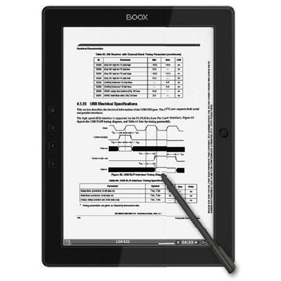 Az Onyx BOOX 24,6 cm átmérőjű e-Ink kijelzője az egyik legnagyobb méret a kínálatban. Azoknak készült, akiknek fontos, hogy a szövegek és a hozzájuk tartozó ábrák egy oldalon megjeleníthetőek legyenek. A Wacoom Onyx tollal a szövegben kiemelhetünk, aláhúzhatunk és szabadon rajzolhatunk is.