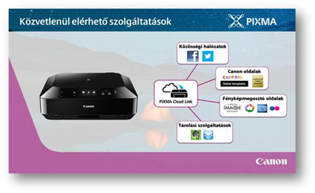 A modernebb nyomtatókkal együtt a PIXMA szolgáltatások is megújultak. A továbbfejlesztett PIXMA Cloud Link szolgáltatás lehetővé teszi a közösségi hálózatok elérését a számítógép nélkül is, közvetlenül a nyomtató TFT kijelzőjét használva.