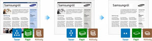 A takarékoskodásra is többféle trükköt tud az SL-M2675F. Az N-up print több dokumentumoldalt nyomtat egyetlen lapra. E toner takarékos mód kevesebb tintával dolgozik. A kétoldalas nyomtatás időt és papírt spórol.