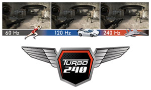 Az FG2421 sajátos 240 Hz-es turbó módjában egy új tartományba kerülünk, átlépjük a 100 Hz-et és a 120 Hz-et, elhagyjuk a 144 Hz-es frekvenciát és az emberi szem által már teljesen folyamatos lejátszásban lesz részünk. A képfrissítés 1 ezredmásodpercnél is gyorsabb.