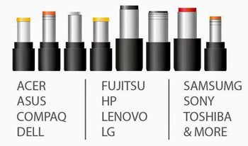 A kábel végére 8 különböző, cserélhető "dugó" szerelhető fel, amelyek lefedik a legtöbb laptop márka szinte összes modelljét: HP, Dell, Acer, Asus, Toshiba, Lenovo, SONY, Fujitsu és így tovább. Sokszor előfordul, hogy a tárgyalópartnerünk használná a laptopját, de éppen lemerülőben van. Ha egy ilyen van az irodában, akkor a vendégeink noteszgépei is feltölthetők és a tárgyalás zökkenőmentesen folytatható.