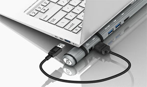 A dokkoló a laptop alá helyezve egy kényelmes állványként funkcionál, használatához csak egy szabad USB csatlakozóra van szükség. Windows és Mac laptopokkal is használható. A JD500 USB 3.0 Docking Station egy új funkciót vezet be, a Wormhole Switch-et.