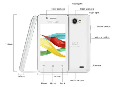 Akkor most tessék megnézni a Goclever kicsi újdonságait! Vegyük például a 3,5" LCD kijelzős Quantum 350-et. A méretei pont a kihalófélben levő telefonokéhoz hasonló, 115 x 61 x 10,5 mm. Csakhogy itt az előlapot a kijelző foglalja el a gombok helyett.
