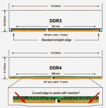A fizikai megjelenését tekintve a DDR3 és DDR4 hasonló hosszúságú DIMM modul. A DDR4 modulok 288 tüskével kapcsolódnak az alaplaphoz. Az ilyen technológia váltásoknál előforduló véletlen balesetek elkerülése végett a DIMM-n a nyílás természetesen máshol, kicsit jobbra található. A modulon több chip-et láthatunk, mint a DDR3 elődön.