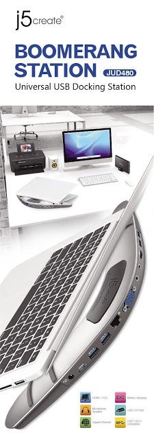 A JUD480-20B Boomerang Station dokkoló kibővíti a laptop képességeit, például egy második monitor csatlakoztatásának lehetőségével. Az új monitort a HDMI vagy a VGA porthoz kapcsolhatod, a további USB 3.0 portokba egeret, billentyűt, külső meghajtókat, stb. csatlakoztathatsz. Ha beérsz az irodába, és leteszed a laptopodat a dokkolóhoz, akkor minden azonnal működni fog, mintha egy asztali gépedhez ültél volna le. A perifériákat nem kell minduntalan bedugni vagy kihúzni.