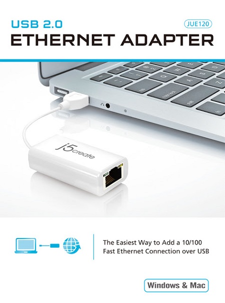 A JUE120-60B Ethernet hálózati adapter egy USB 2.0 portból csinál 10/100Mbps hálózati aljzatot. A legegyszerűbb módja annak, hogy hálózati port nélküli Linux, Windows vagy Mac gépet gyorsan a hálózathoz kapcsolhass. Mindössze 19 g az egész és driver telepítésére sem lesz szükséged.