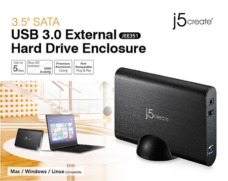 Kiváló minőségű USB 3.0-ás, SATA külső merevlemez ház a JEE351-2EB, 3,5 collos merevlemezek számára ad otthont. Egészen 6TB kapacitásig használható. Alumíniumból készült, jó hővezető. A lábára és oldalára állítva alig foglal helyet az íróasztalon.