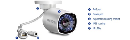 A kamerák éjjel és nappal is használhatóak, egészen 4MP full HD felbontásig készítenek videót. Az éjszakában kb. 30 m a látótávolságuk. Természetesen használható hozzájuk a TRENDnet iOS vagy Android appja is. A kamerák ONVIF (Profile S, Profile G) és PSIA kompatibilisek és széles szolgáltatás csomagot tartalmaznak, mint például a mozgásérzékelés, időzíthető felvételek, tároló hely telítettség-figyelmeztetés vagy a szabotázsvédelem.
