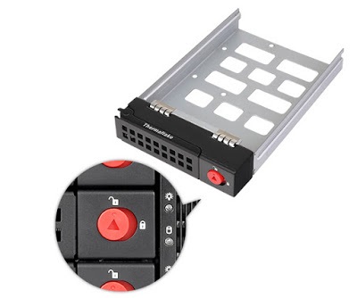 A Thermaltake számos adattároláshoz használható eszközt fejlesztett ki. Ezek közül a HDD rack megoldásokkal maximálhatod a házba építhető 2,5" és 3,5" meghajtók számát. A rackből a meghajtó a ház megbontása nélkül kivehető és cserélhető. Az illetéktelen hozzáférésektől a klasszikus kulcsos védelem gondoskodik.
