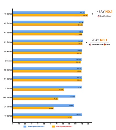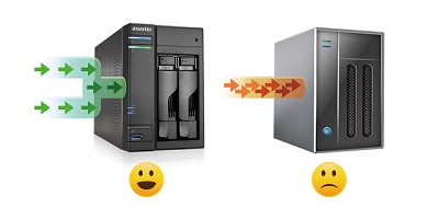 Az ASUSTOR NAS-os az összes NAS kategóriában (két- vagy négylemezes) és az összes tárolási módban (RAID 5, RAID10) kiemelkedően magas adatátviteli sebességgel büszkélkedhetnek. Az AS32 és az AS62, ha egy hajszállal is, de ebben is az elődei fölé tudott lépni.